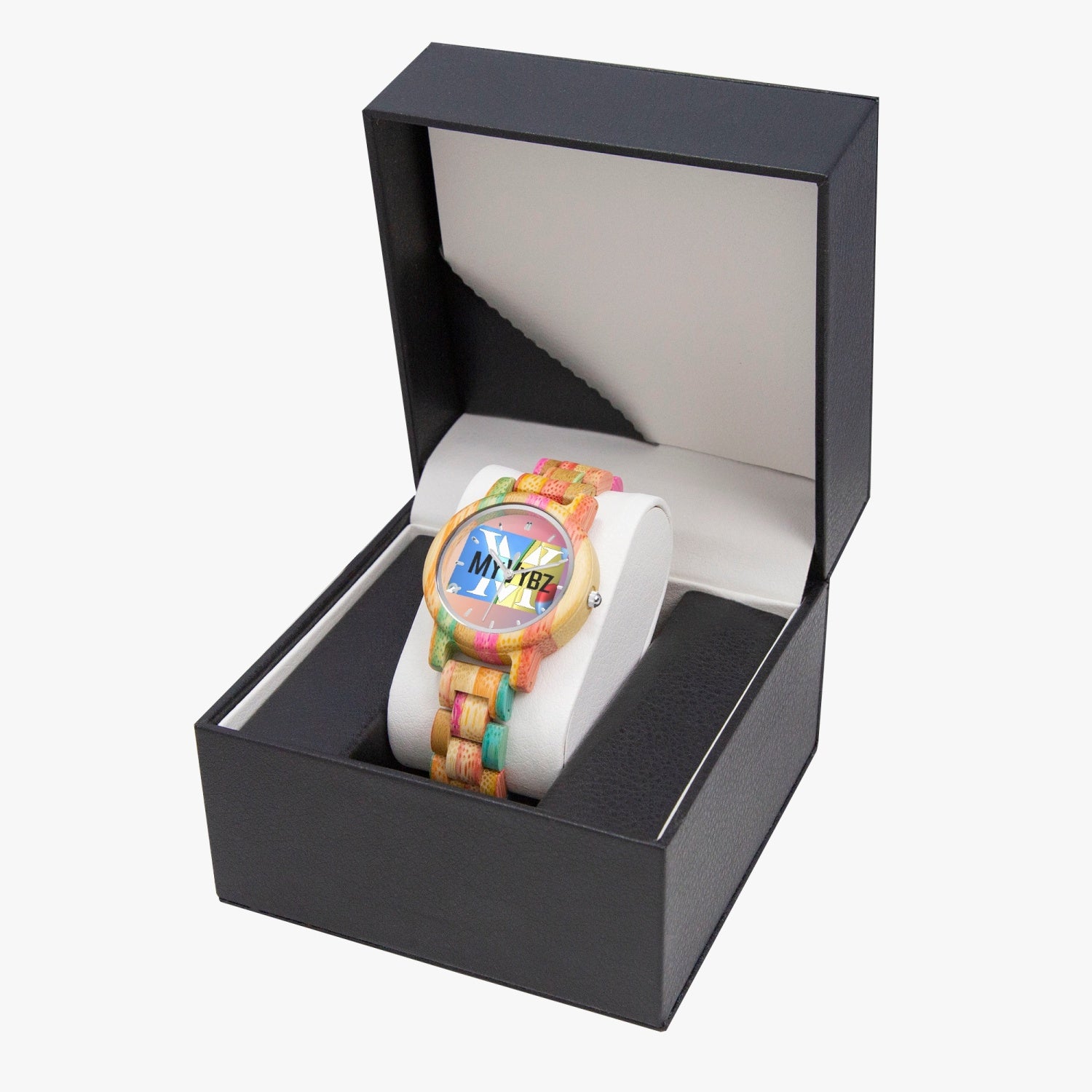 MyVybz.Blended Ice Cream Wooden Watch - Green & Pink